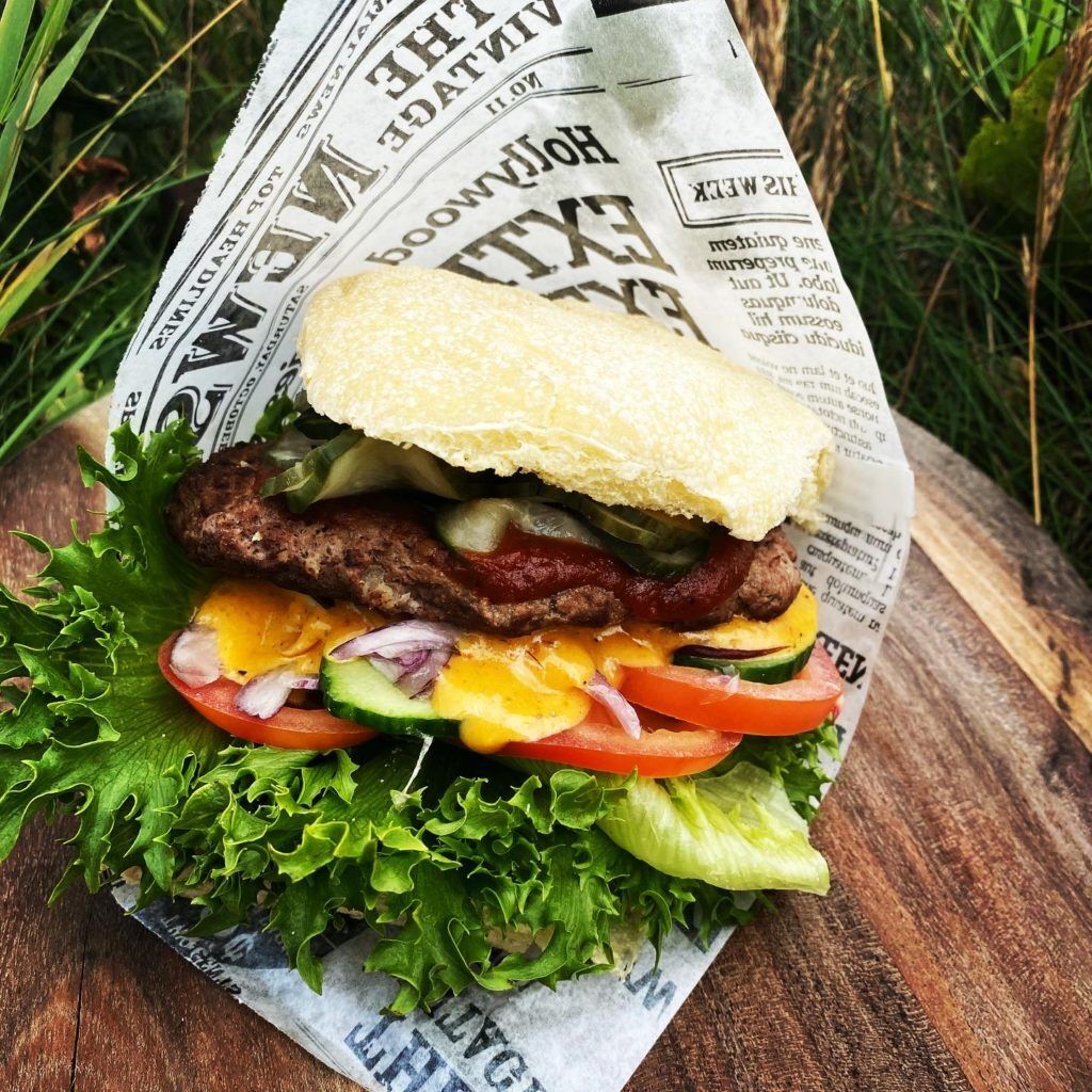 All you can eat burger. Med pommes frites og min 6 forskellige dyppelse.
